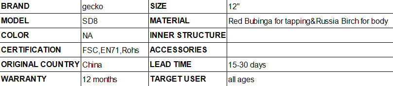 - Material: Red Bubinga for tapping&Russia Birch for body