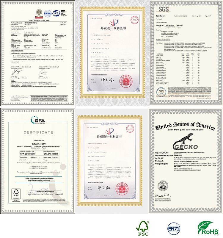 Gecko owns EN71 , FSC ,Rohs,Design Patents and Gecko US Brand registered certification