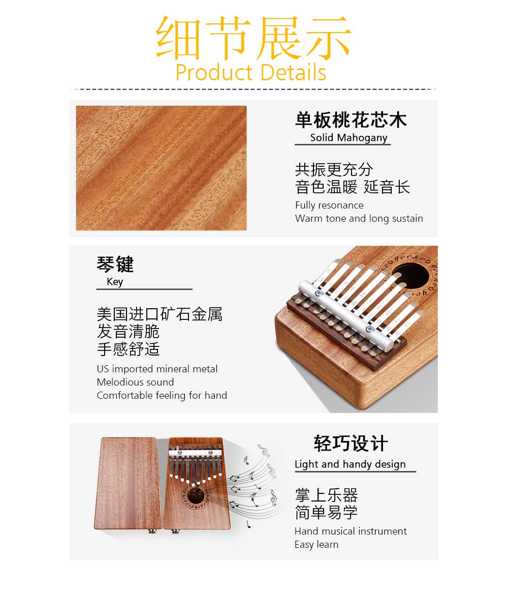 New Fashion Design for Cheap Drum Stick Bag - 100% Nature Handmade 17 Key EQ Kalimba gecko professional wood kalimba factory – GECKO Detail: