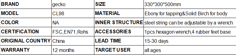 - Material: Natural Eboy for tapping&Solid Russia Birch for body