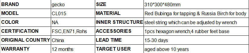 - Material: Red Bubinga for tapping&Russia Birch for body